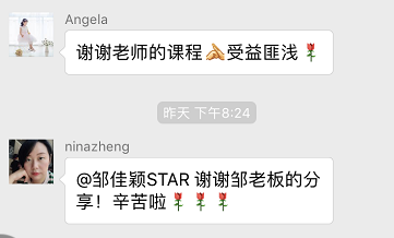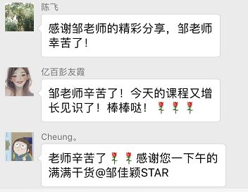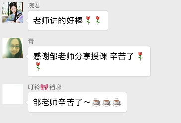 活动结束后,学员都对邹老师赞不绝口,纷纷表示此次培训受益匪浅,需要好好消化并对邹老师表示感谢。