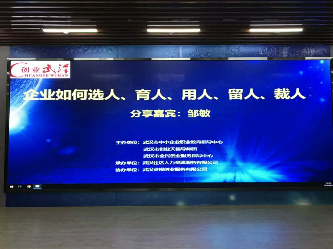 2018年6月28日,由武汉市中小企业职业教育指导中心、武汉市创业天使导师团主办,武汉仕达人力资源服务有限公司承办的公益课程《企业如何选人、育人、用人、留人、裁人》在汉阳龙阳湖健康谷成功举办。共吸引180余位高管参会。